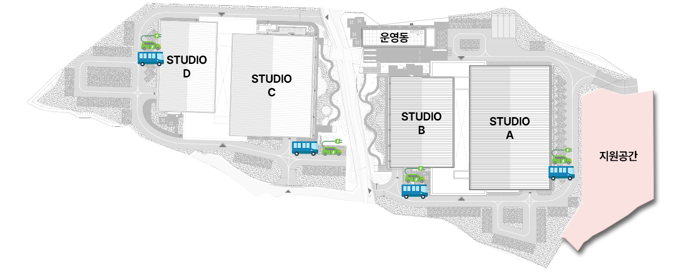 스튜디오 외에는 다용도로 활용 가능한 지원공간(1,500평)이 있습니다.